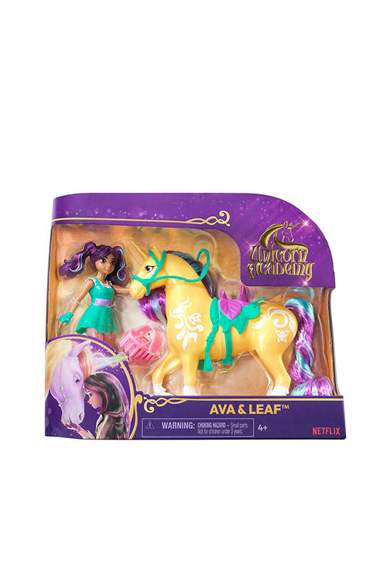 The UNICORN ACADEMY Ava & Leaf set, inspired by the popular NETFLIX show and best-selling books, sparks endless pretend play! The 4.5” Ava doll with 7 points of articulation pairs perfectly with the 5” Leaf unicorn, featuring Plant Magic details and a removable saddle and bridle.