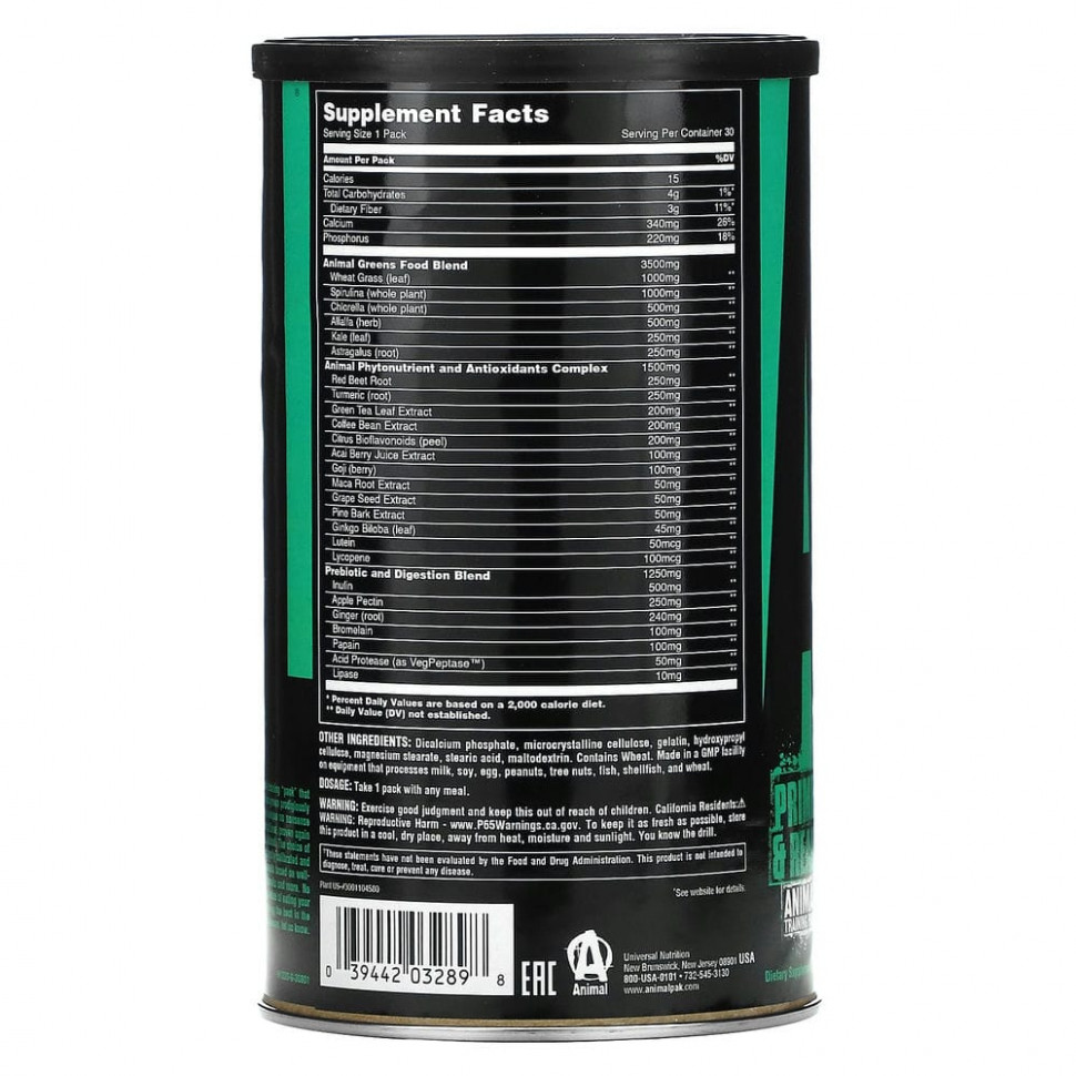 О нас. Рождение бренда Animal в 1983 году было ознаменовано появлением Animal Pak — эффективного тренировочного комплекса, который заложил основы будущего развития. Появившись в ответ на запросы и потребности профессиональных бодибилдеров, бренд Animal за эти десятилетия невероятно вырос. На протяжении вот уже многих лет название бренда ассоциируется с доверием, честностью и серьезным подходом к делу. Animal представляет собой линейку продуктов, которые выдержали испытание временем, постоянно доказывая свою эффективность как в научных лабораториях, так и в спортивных залах, что важнее всего. В спортзале и на сцене. Animal. Выбор чемпионов. Animal Greens® — просто потрясающее средство. Это полноценный, оптимально выверенный и сбалансированный источник питания, богатый антиоксидантами. Он идеально вписывается в нашу линейку продуктов, а его новая формула основана на тщательно изученных природных соединениях, содержащихся в зелени, такой как листовая капуста, паростки пшеницы, люцерна, спирулина, хлорелла и другие растения. Во всем мире люди, занимающие силовыми упражнениями, больше не отдают предпочтение орехам и ягодам, они теперь знают, насколько полезно употреблять овощи, особенно эти эффективные растения.