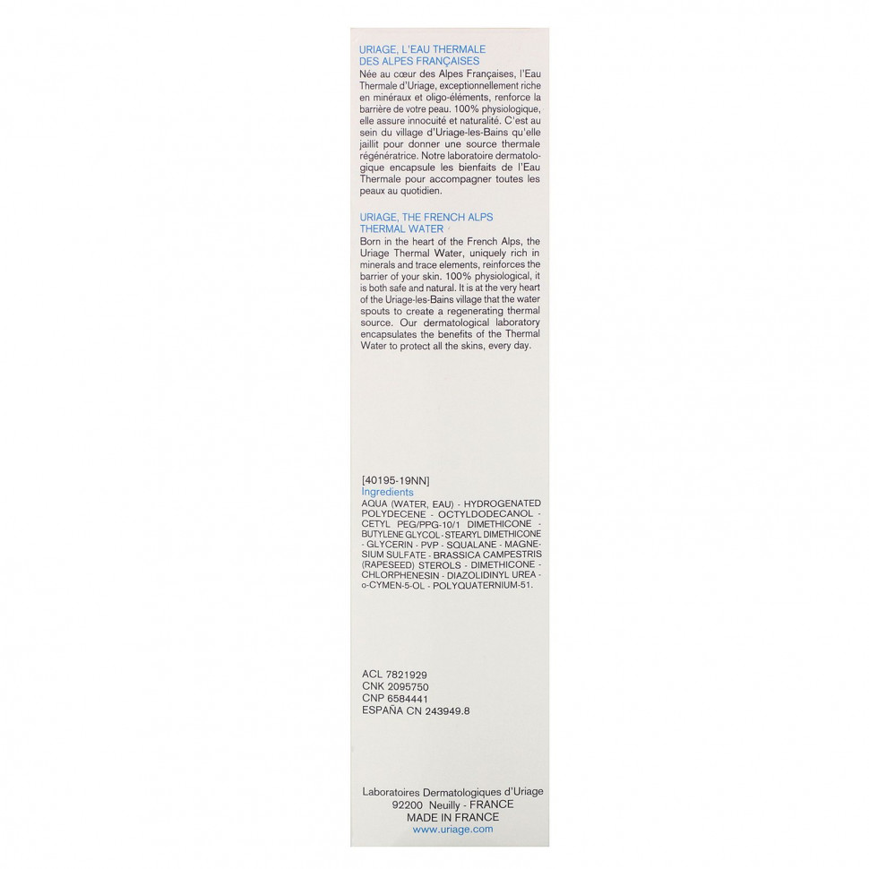 Термальная вода Uriage, родившаяся в самом сердце французских Альп, уникально богата минералами и микроэлементами, укрепляет защитный барьер вашей кожи. На 100% физиологический, безопасный и натуральный продукт. Именно в самом сердце деревни Урьяж-ле-Бен бьет струи воды, образуя регенерирующий термальный источник. Наша дерматологическая лаборатория использует термальную воду для ежедневной защиты кожи.