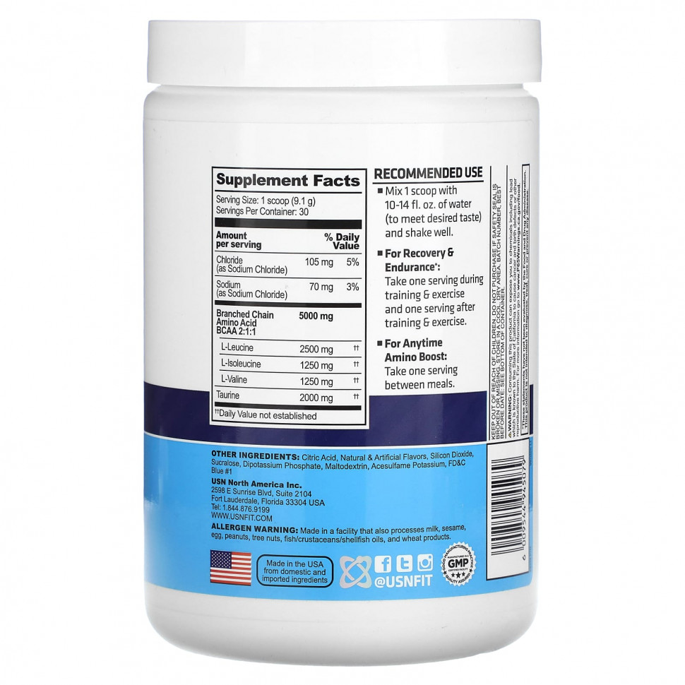 BCAA AMINO + содержит 5 г аминокислот с разветвленной цепью (BCAA) в оптимальном соотношении 2: 1: 1 и таурин для восстановления после физических нагрузок.