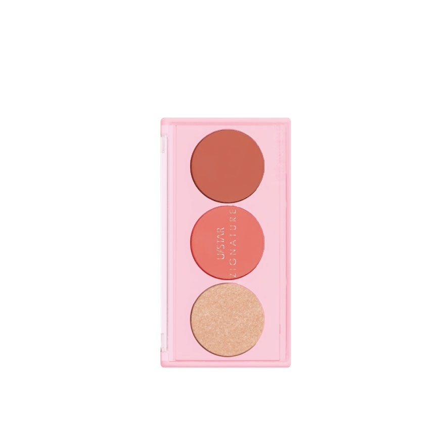 Ustar Zignature Maxx Cover Blush and Highlight Palette 02 Dewy Moon Create glowing skin finished look with blush and highlighter palette, available 3 shades in one compact Combined with Soft Focus Effect technology,give a feels extra smooth and camouflage the skin texture.Easy to blended and longlasting.Contain 2 shades matte blush on with Super Fine Base texture and intense collor. Make your cheeks look blushing and healthy. Complete with glowing shimmer highlights.You can apply to make natural glow look.Combine with Hyaluronic, Niacinamide and Rosehip Oil that gives moisture and looks youthful.