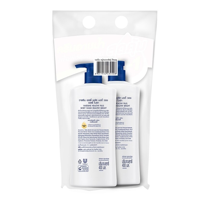 Vaseline Healthy Plus Body Wash Healthy Bright Introducing the new step of clean and healthy skin with the best formulation from Vaseline bodywash. Tested by dermatologists. Not only that it helps reduce bacteria 99.99 but also help nourish dry skin with vitamin E and Vaseline Jelly, exclusive only in Vaseline. Guarantee for clean and healthy skin with the healing power of Vaseline from laboratory test in 2020 with Bacteria E.coli and S.Aureus A healthy skin is a clean and nourished skin. Vaseline Body wash range actively nourishes your skin with a special moisturing nutrient from Vaseline lotion. Your skin feels clean and with a brigther look