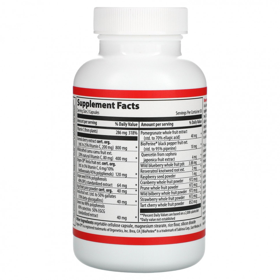 Super Natural C — это добавка растительного витамина C с высокой способностью поглощать радикалы кислорода (ORAC) из сертифицированных органических экстрактов амлы, ацеролы и дикорастущего каму-каму. Добавка витамина C, которую ваш организм может распознать и синтезировать в качестве источника пищи.