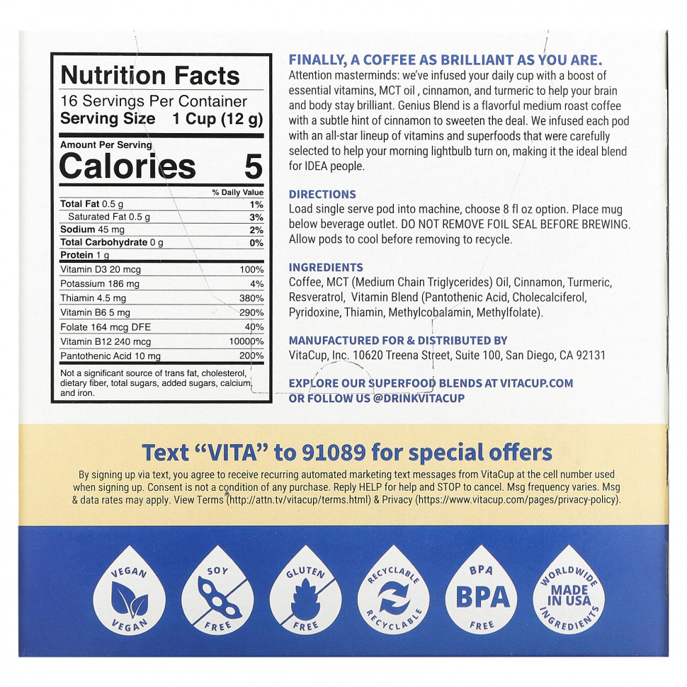 Внимание, вдохновители: мы наполнили вашу ежедневную чашку необходимыми витаминами, маслом MCT, корицей и куркумой, чтобы помочь вашему мозгу и организму оставаться здоровыми. Genius Blend — это ароматный кофе средней обжарки с легким оттенком корицы, который делает напиток более сладким. Мы добавили в каждую капсулу звездную линейку витаминов и суперфудов, которые были тщательно отобраны, чтобы помочь вашей утренней лампочке загореться, что сделало ее идеальной смесью для людей, придерживающихся идеи IDEA.