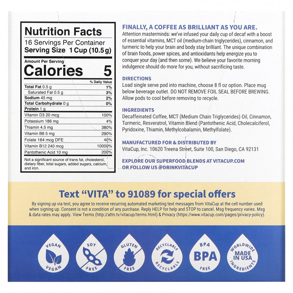 Вниманию вдохновителей: мы добавили в вашу ежедневную чашку кофе без кофеина большое количество незаменимых витаминов, масла MCT (среднецепочечных триглицеридов), корицы и куркумы, чтобы помочь вашему мозгу и организму оставаться здоровыми. Уникальное сочетание продуктов для мозга, энергетических специй и антиоксидантов зарядит вас энергией, чтобы добиться успеха в течение дня (и даже немного больше). Мы считаем, что любимое утреннее лакомство должно приносить больше пользы, но при этом не жертвовать вкусом.
