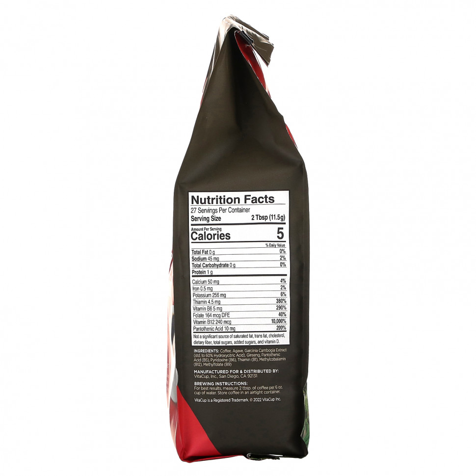 Кофе, агава, экстракт гарцинии камбоджийской (стандартизированный до 60% гидроксилимонной кислоты), женьшень, пантотеновая кислота (B5), пиридоксин (витамин B6), тиамин (витамин B1), метилкобаламин (витамин B12), метилфолат (витамин B9).