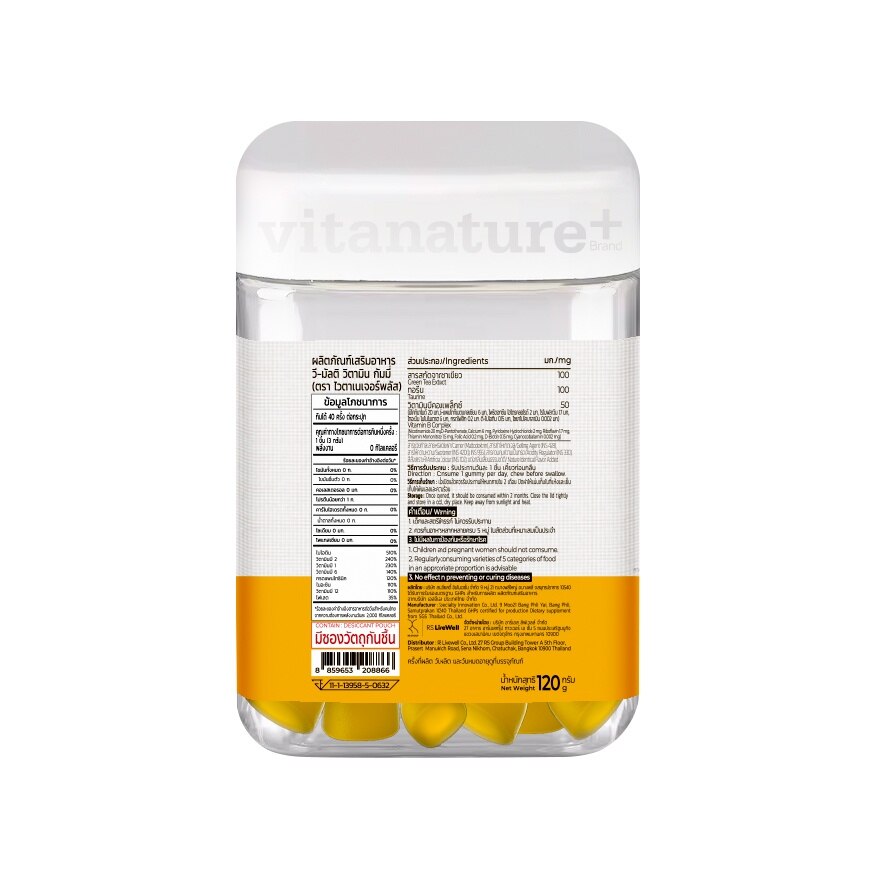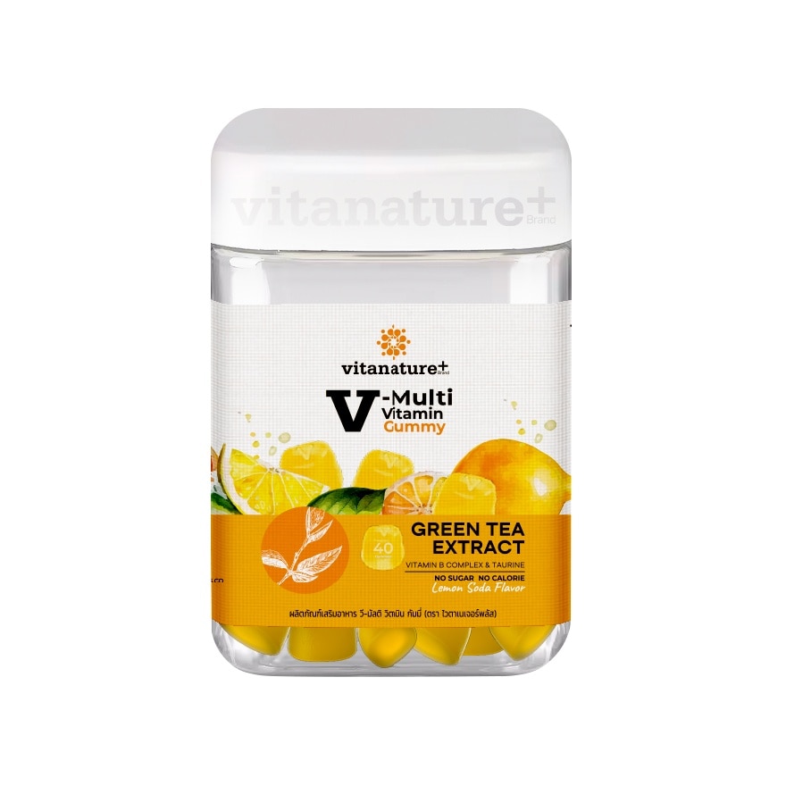 V-Multi Vitamin Gummy Dietary Supplement Product (Vitanature+ Brand) 40 Gummies (Green Tea Extract, Vitamin B Complex & Taurine) No Sugar, No Calorie