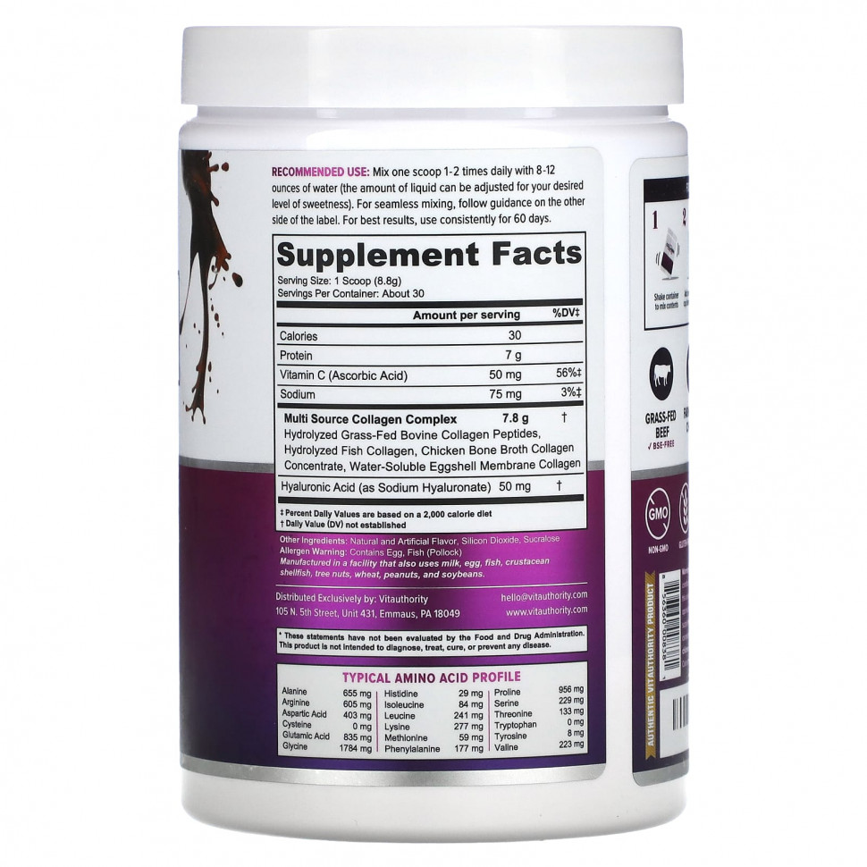 Multi Source Collagen Complex Hydrolyzed Grass-Fed Bovine Collagen Peptides, Hydrolyzed Fish Collagen, Chicken Bone Broth Collagen Concentrate, Water-Soluble Eggshell Membrane Collagen |