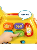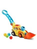 Pop, drop and watch your little one stroll along with the pop-a-balls push & pop bulldozer by VTEC. This delightful bulldozer encourages movement and motor skills in your little Builder when the colorful balls pop up through the chimney, into the scoop bucket and back again. Load the balls into the bulldozer, start pushing the chunky handle and the watch the bulldozer come to life with Poppin’ Balls and fun tunes! Your little one can also sit and play with the bulldozer by pressing the buttons to learn colors, numbers and music.