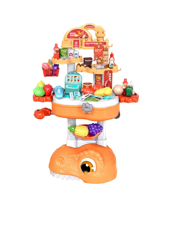 Enjoy endless fun with your friends and unlock the world of imagination to float away through the Dinosaur Supermarket Counter Set 3 in 1 — 61 pieces from the brand WANGDEK PRO that can be used as a shoulder bag, drag bag, and supermarket counter. The supermarket counter set comes with 61 pieces of equipment. Play it with your friends and share fun experiences to make the most of your time.