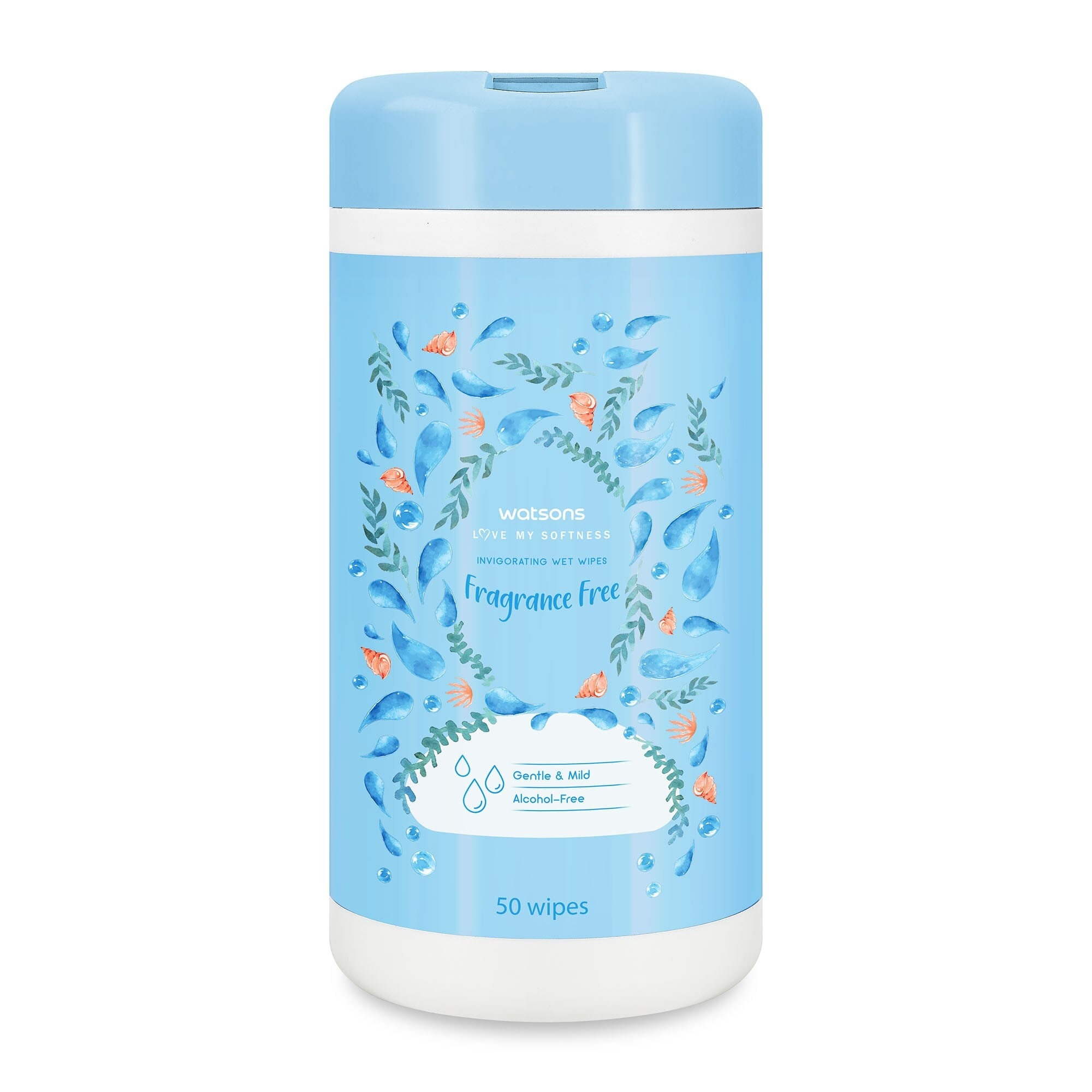 Watsons Invigorating Wet Wipes Fragrance Free Canister 50pcs.