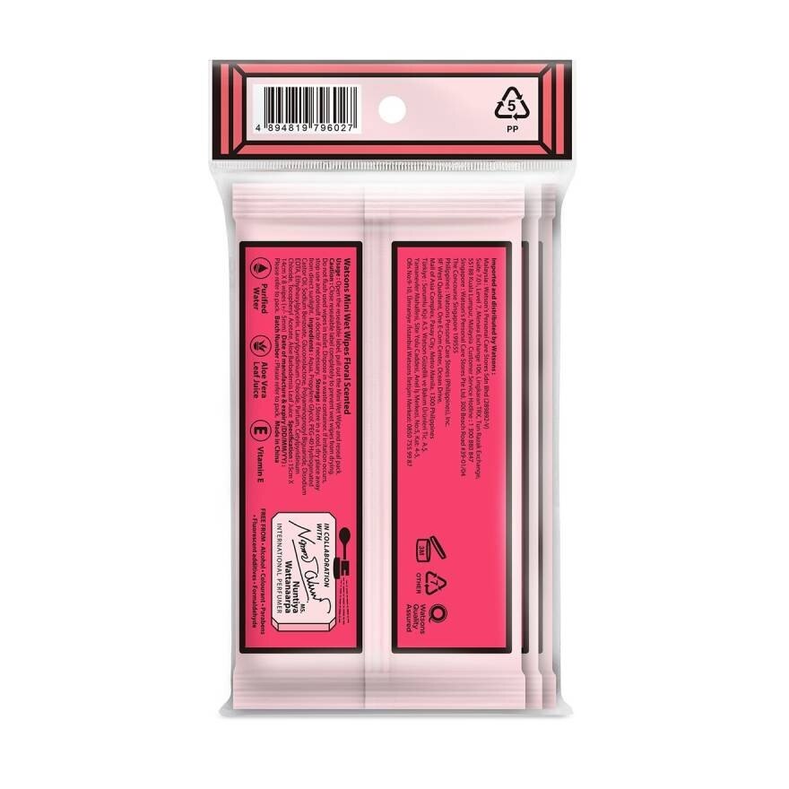 Watsons Mini Wet Wipes Floral Scented 8 sheets x 3 packs.