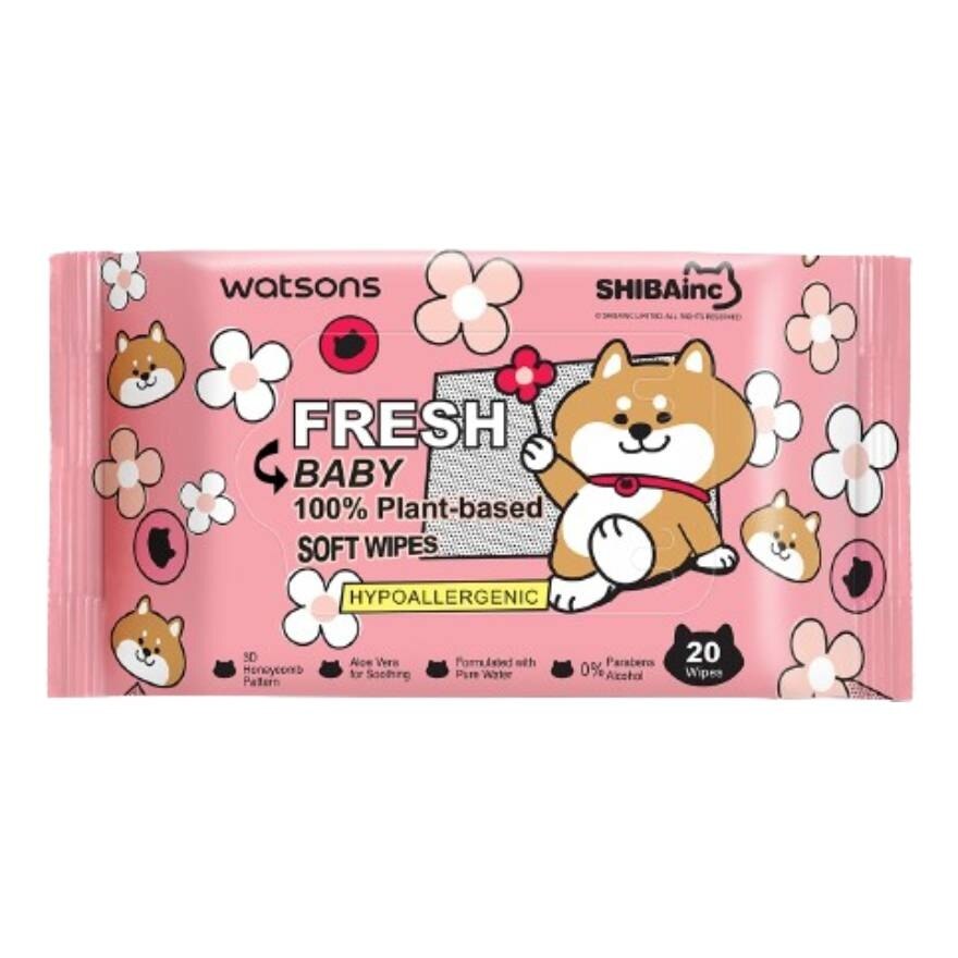 Watsons x Shibainc Fresh Baby 100 Plant-based soft wipes 20 sheets is Mildly formulated with pure water and no unwanted ingredients to provide loving care for your little one. Clean with Trust Hypoallergenic and EUROTOX Accredited Toxicologist approved perfect for your baby sensitive skin. Clean with Love Lets go green Together. Our baby wipes are made with 100 plant-based fibers and manufactured under ISO 14001.