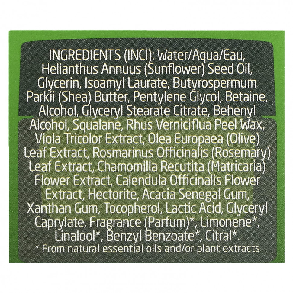 Наш богатый питательными веществами крем умело смешивает ценные растительные экстракты листьев оливкового дерева, календулы и анютиных глазок со скваланом и подсолнечным маслом для глубокого увлажнения, придавая коже шелковистую мягкость и сияние. Интенсивно увлажняет кожу, придавая ей естественный сияющий вид.