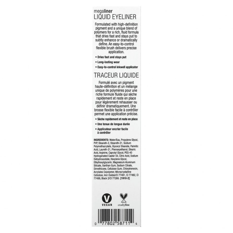 Формула с высококачественным пигментом и уникальной смесью полимеров позволила создать насыщенное жидкое средство, которое быстро высыхает и не исчезает, мягко подчеркивая отдельные черты или создавая драматический эффект. Удобная кисточка позволяет точно наносить средство.