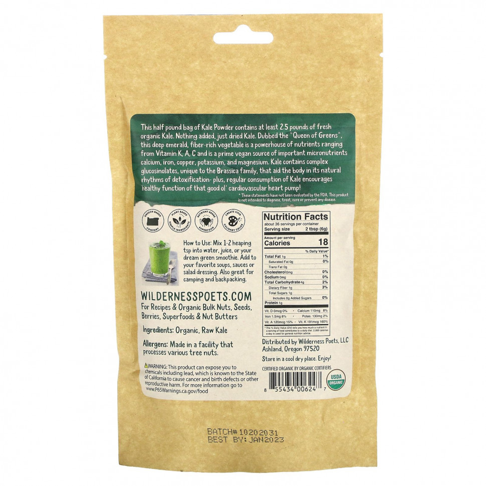 В этой 226-граммовой упаковке кудрявой капусты в порошке содержится не менее 1,1 кг этого зеленолистного органического овоща в свежем виде. Никаких добавок: только сушеная кудрявая капуста. Этот богатый клетчаткой овощ насыщенного изумрудного цвета, получивший название «Королева зелени», является источником питательных веществ, включая витамины K, A, C, и является основным источником важных для веганов микроэлементов — кальция, железа, меди, калия и магния. Кудрявая капуста содержит сложные глюкозинолаты, уникальные для семейства Brassica, которые помогают организму поддерживать естественные ритмы детоксикации. Регулярное употребление кудрявой капусты способствует сохранению здоровья этого старого доброго «кровяного насоса»!