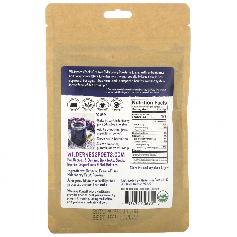 Органический порошок бузины Wilderness Poets содержит множество антиоксидантов и полифенолов. Черная бузина — чудесный союзник, который нужно держать в шкафу! На протяжении веков его использовали для поддержки здоровья иммунной системы в виде чая или сиропа.