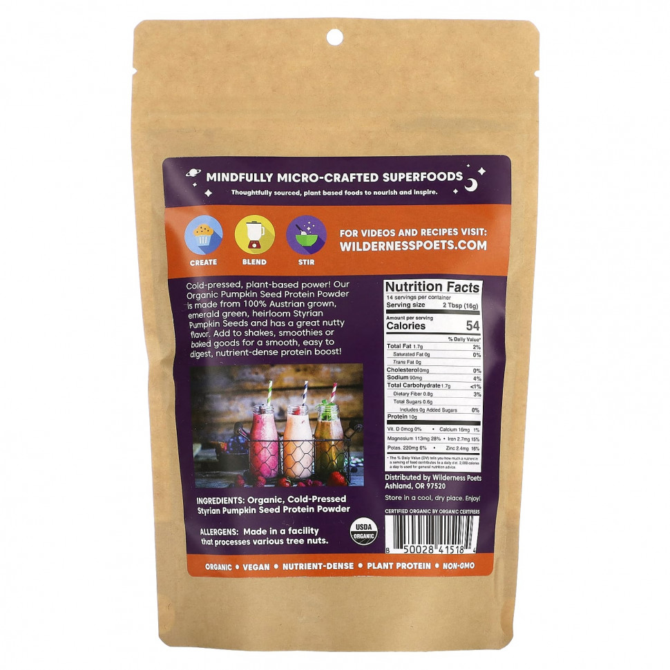Органический, протеиновый порошок из семян штирийской тыквы холодного отжима.
