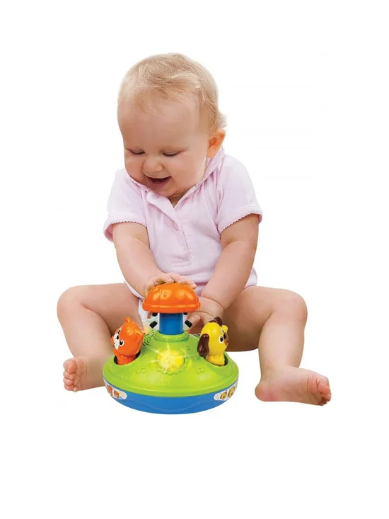 Toy Animal Friend Spinner from the brand WINFUN. Press the top button to make the base spin Fun phrases of animal names and sounds Cheerful melodies, sound effects and flashing lights. Made from good quality materials, safe, soft, suitable for young children. Let children know about animals, music and colors. Develop CPS (Cognitive Skill, Physical Skill, Social Skill) skills through UK CA, CE safety standards. Suitable for children from 12 months onwards.