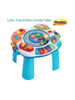 WINFUN/strong> Letter Train & Piano Activity Table made from good quality materials, Alphabet table with simple learning and play activities,Push train engine on the alphabet track and activates the Alphabet Song to enhance the development of the child.