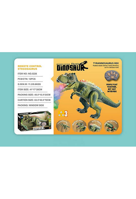 Radio-controlled dinosaur toy T-Rex from WISHER TOY Beautiful design Can spray colorful smoke With realistic lights and sound effects Enhance imagination Made from quality materials Simulate the movement, postures and sounds of dinosaurs Let children learn and help enhance their imagination Suitable for gifts for children