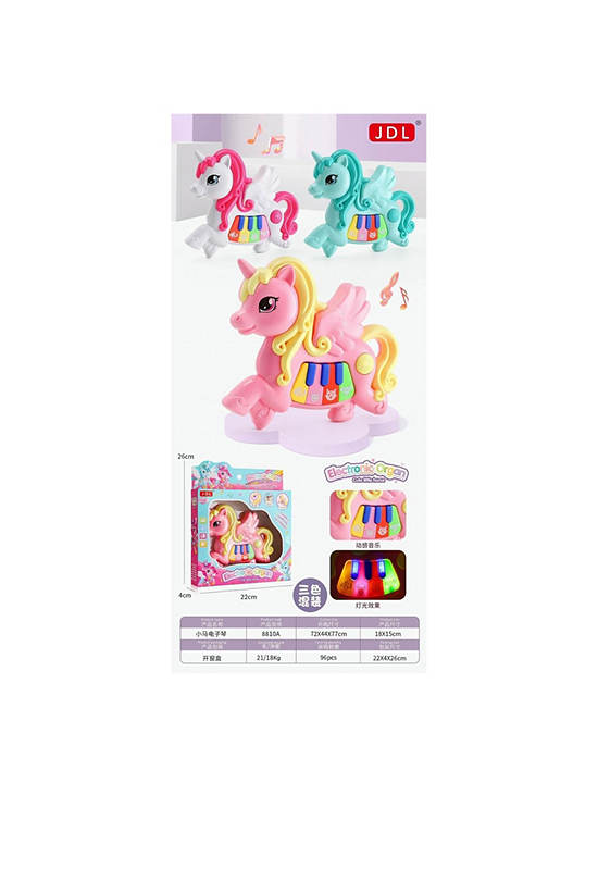 Organ toy from WISHER TOY, cute horse design, 6 playing functions, with sound, with light, enhancing development, made of high-quality materials, light weight, can be played anywhere. Educational toys for children, enhancing imagination and developing IQ and EQ very well. Let children learn about musical notes, animal sounds, and various sounds. Enhances touch, vision, and hearing very well.