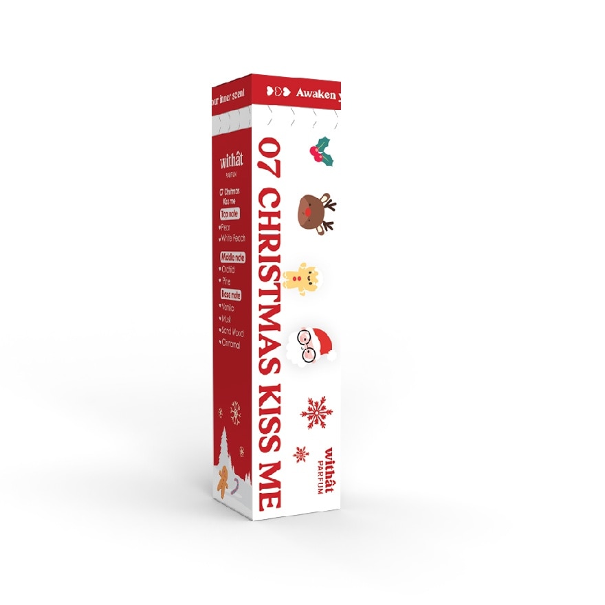 Withat Christmas Kiss has a sweet and gentle scent, warm with a gentle scent of light vanilla, giving a festive feeling that fits the Christmas festival. Long-lasting, can be used on many occasions. Long-lasting and suitable for many occasions, whether it's work, going out or going to a night event. The elegant packaging design reflects a classy and simple style. Sweet scent of sweets, candy, filled with Christmas vapor. With Santa Claus, the scent is unique. Upgrade the intensity. The fragrance is a hundred times more charming. There are 2 sizes to choose from, both compact and portable, such as 10 ml. and 30 ml.