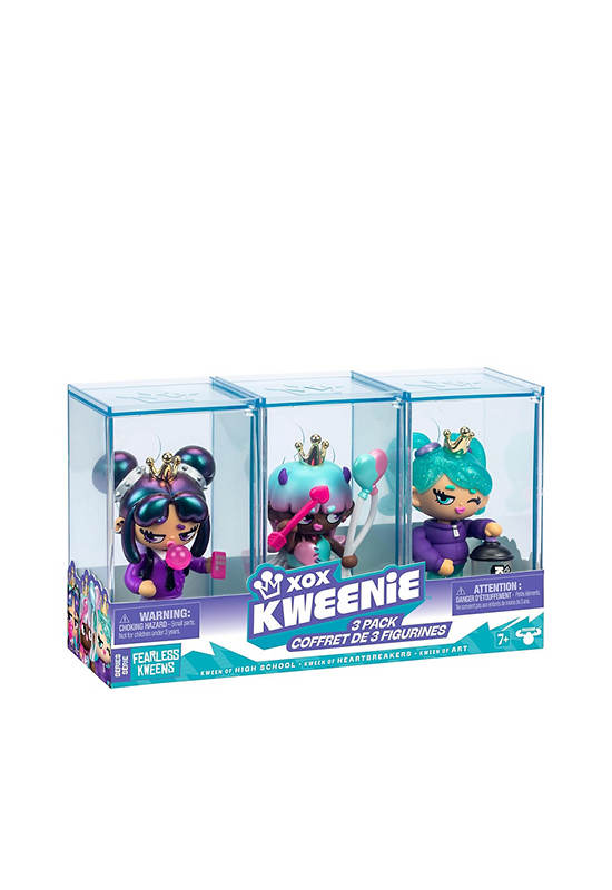 XOX KWEENIES 3 Pack contains 3 collectible figurines with premium features and finishes, each with their own unique perosnality, displayed in their own case. Will you choose the Fearless Kweens or the Quirky Kweens? Every Kween is unique!