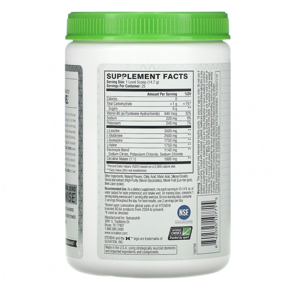Xtend Natural Zero не содержит искусственных подсластителей, ароматизаторов и химических красителей. Этот продукт с натуральным вкусом содержит нашу отмеченную наградами формулу Xtend для восстановления и повышения производительности. Xtend Natural Zero, содержащий 7 граммов аминокислот с разветвленной цепью (BCAA), которые, как было клинически доказано, способствуют восстановлению и росту мышц, также содержит гидратирующие электролиты и дополнительные ингредиенты для повышения производительности, которые помогут вам пополнить запас энергии и восстановиться. Попробуйте все аппетитные, естественно подслащенные продукты Xtend Natural Zero, чтобы достичь своих целей в области здоровья и фитнеса°.