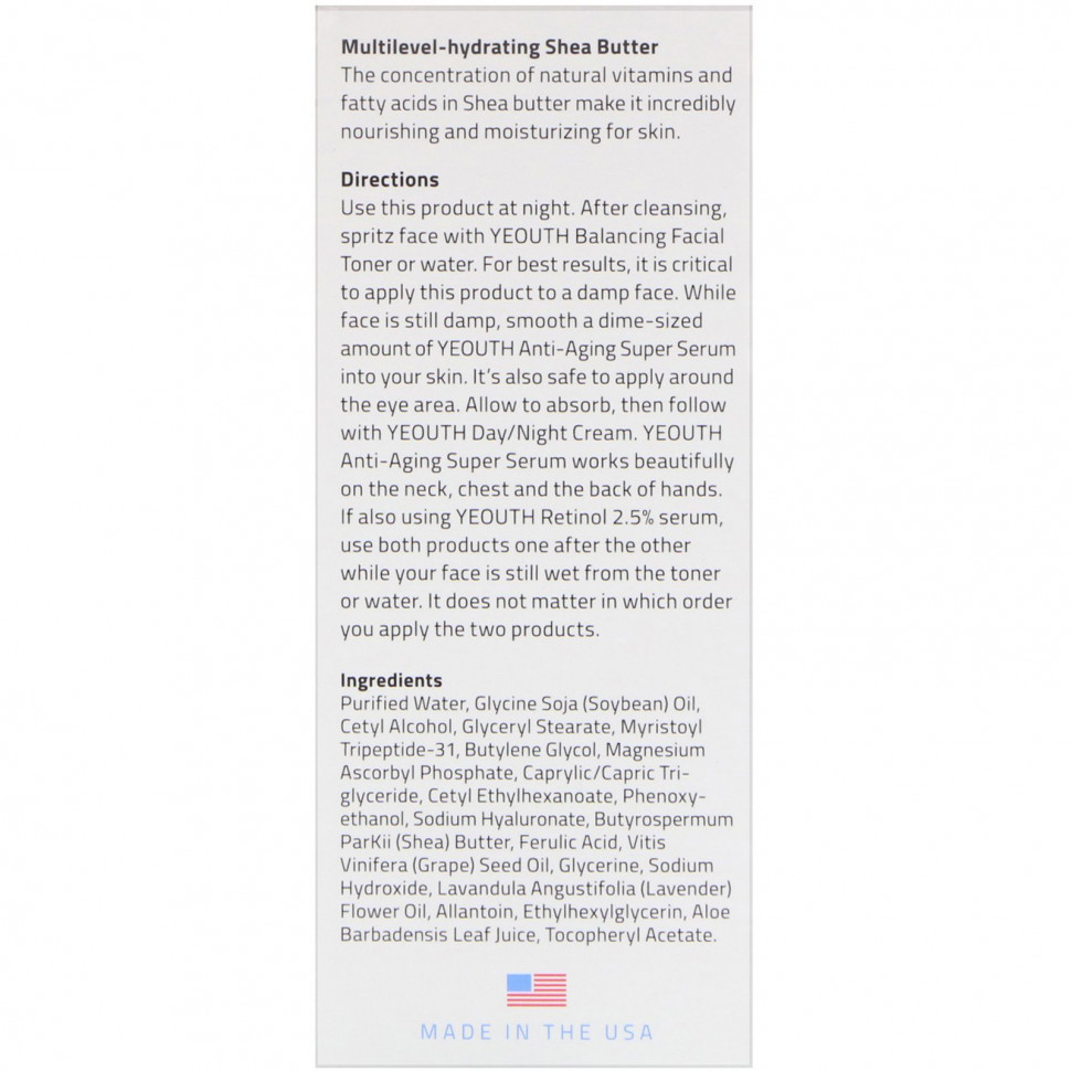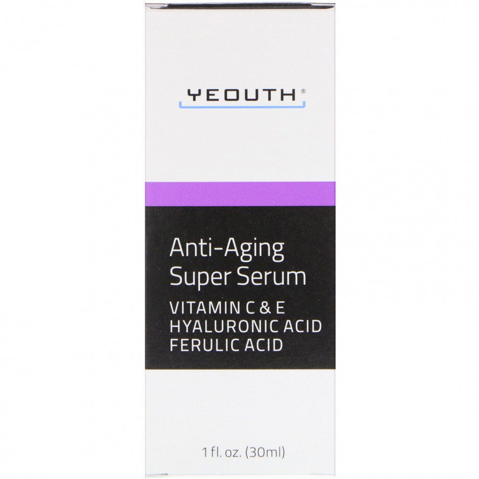 Антивозрастная супер-сыворотка YEOUTH с витаминами C и E, гиалуроновой кислотой, феруловой кислотой