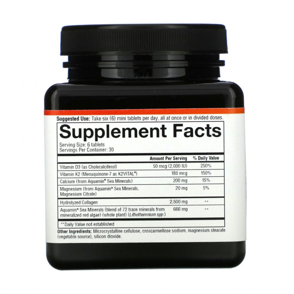 Эффективная смесь коллагена и витаминов D3& K2 обеспечивает питание костной системы и поддержку силы и здоровья костей. Содержит Aquamin®, уникальный минеральный комплекс из морских водорослей с биоактивным кальцием, магнием и 72 микроэлементами.