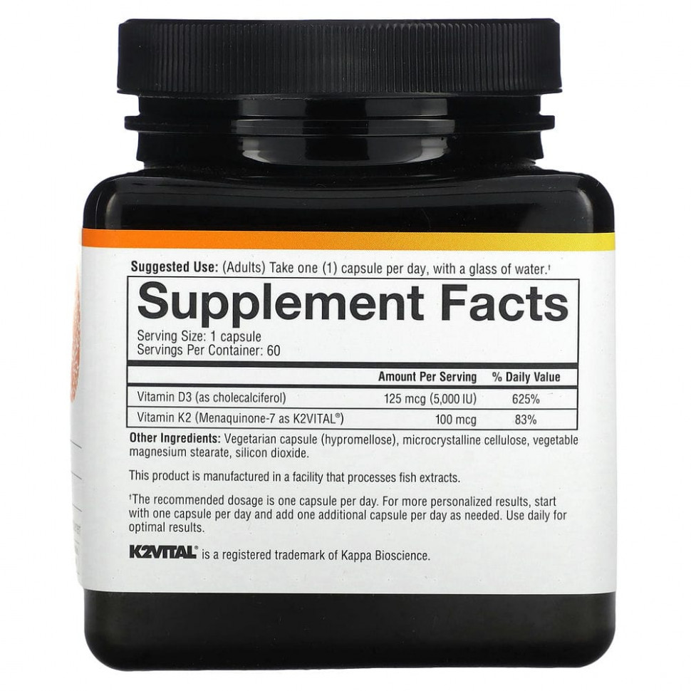 Youtheory® K2D3 содержит необходимые питательные вещества, которые позволяют организму правильно использовать кальций для различных функций при нормальном обмене веществ.
