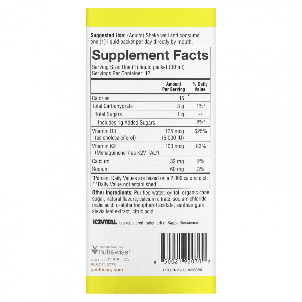 Youtheory K2D3 содержит необходимые питательные вещества, которые позволяют организму правильно использовать кальций для различных функций при нормальном обмене веществ. K2 + D3 также дополняют друг друга, способствуя росту костей и работе сердечно-сосудистой системы.