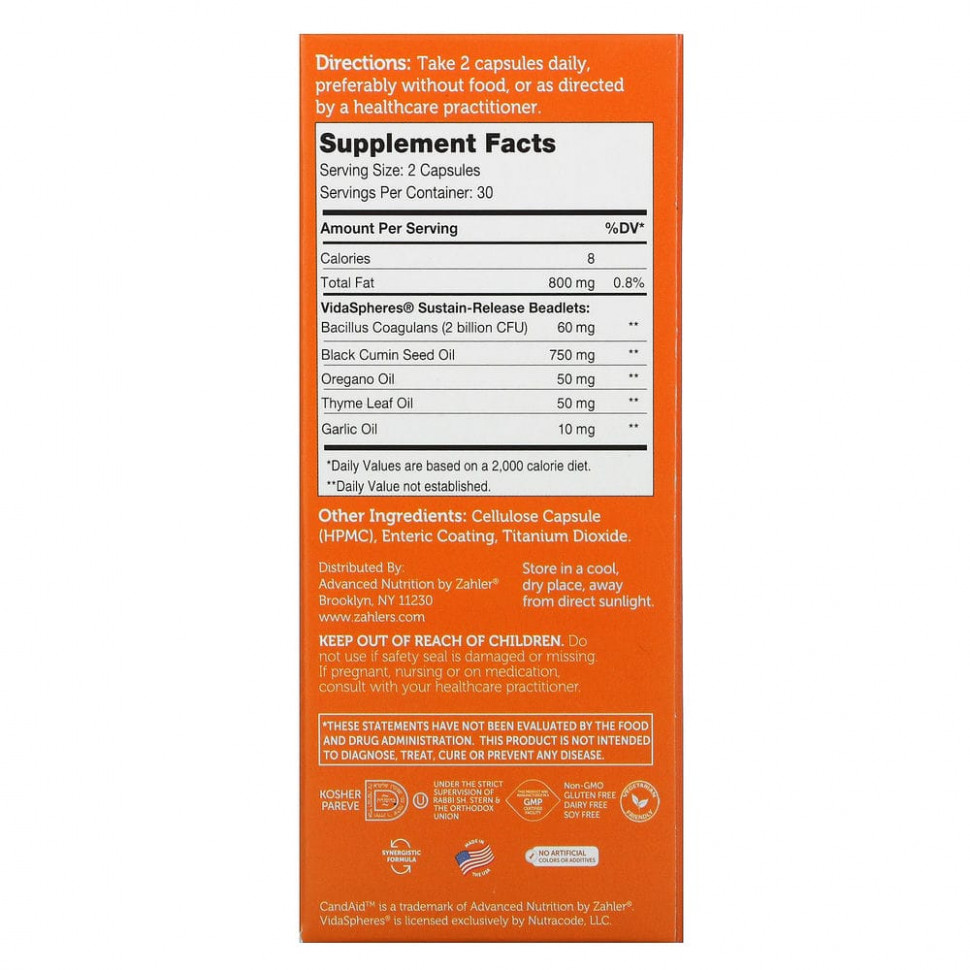 Zahler CandAid ™ содержит уникальную двухэтапную жидкую и твердую систему доставки. Эти этапы дополняют друг друга, поддерживая здоровье кишечника и баланс дрожжей.