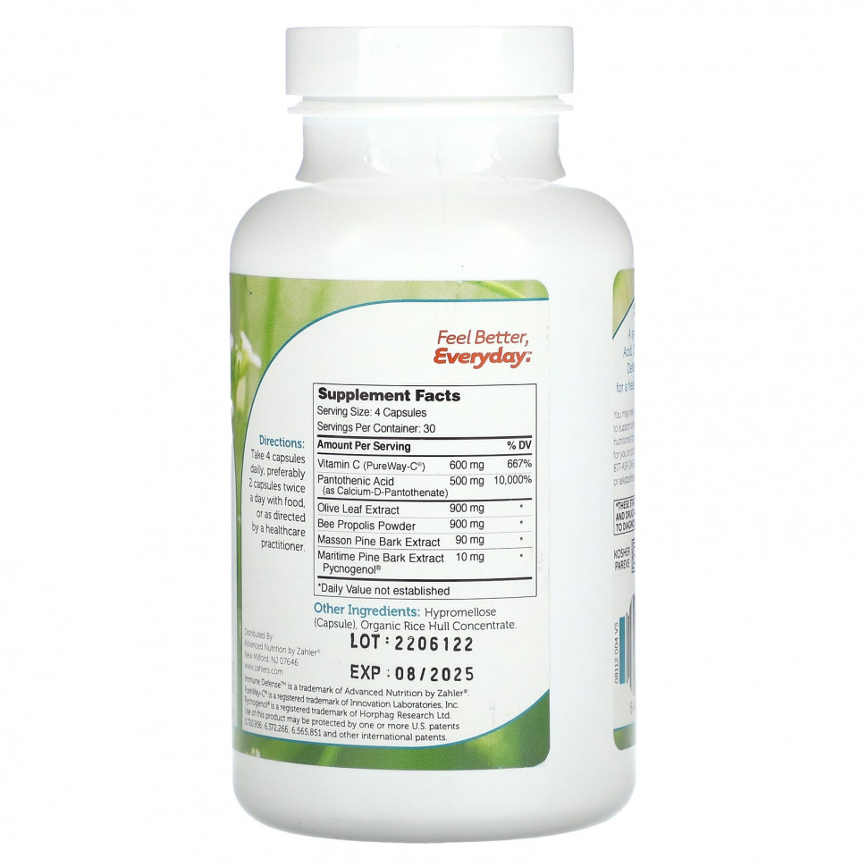 Синергетическая формула, состоящая из витамина С, пантотеновой кислоты, экстракта оливковых листьев и многого другого, Zahler Immune Defense ™ обеспечивает мощную питательную поддержку для здоровья иммунной системы и общего самочувствия.