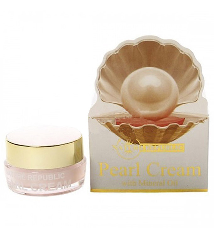 Крем для лица с содержанием жемчужной пудры, растительных компонентов и минерального масла, предназначен для омоложения кожи путем регенерации на клеточном уровне, легкому отбеливанию и сохранению влаги в нижних слоях кожи.
