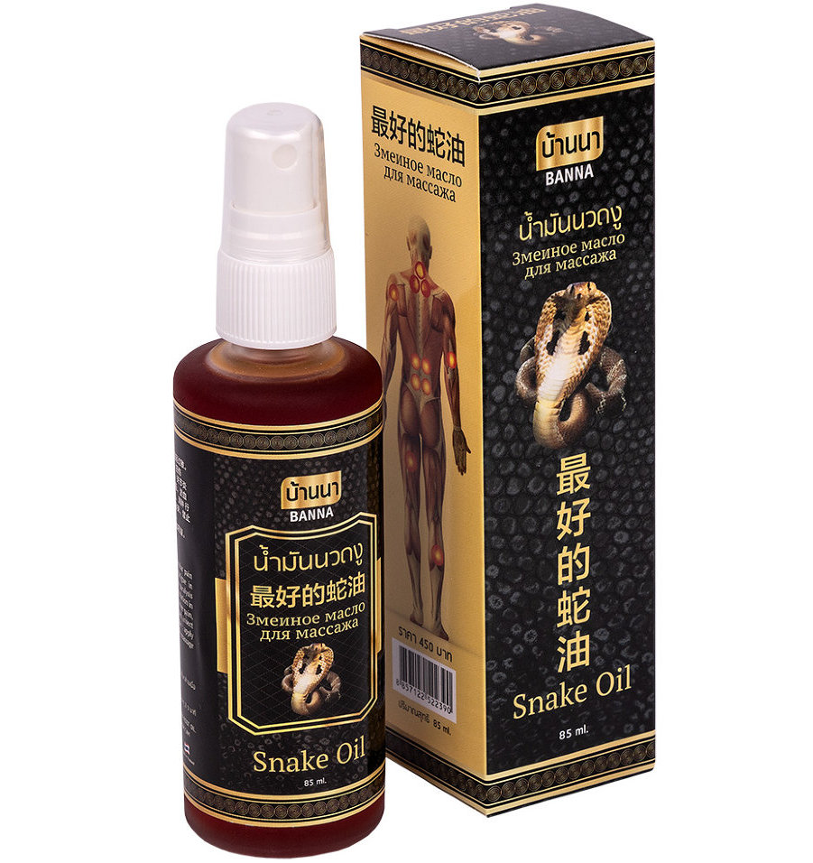 Snake Oil Banna – это тайское масло змеи, эффективное средство для массажной практики, снятия воспалительных процессов и болей после тренировок и напряженного физического труда, заживления синяков и т. д. Препарат эффективен для применения после укусов насекомых, помогает против зуда и ускоряет интенсивность кровообращения в тканях.
