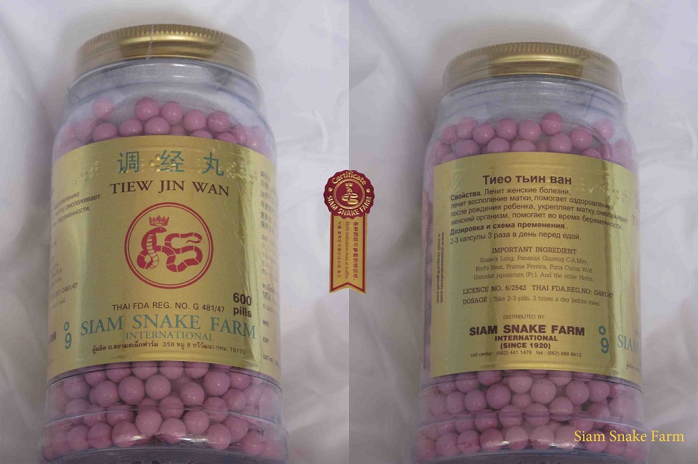 Змеиный препарат Тиео Тьин Ван (Tiew Jing Wan) может использоваться в качестве дополнительного средства при терапии воспалительных заболеваний мочеполовой системы у женщин, при лечении бесплодия и послеродовом восстановлении. Лечит воспаления женских половых органов, повышает тонус половых органов после рождения ребенка, тонизирующе воздействует на женский организм. Ряд ингредиентов обладает общеукрепляющими и иммуномоделирующими свойствами, снимая усталость и тонизируя женский организм.