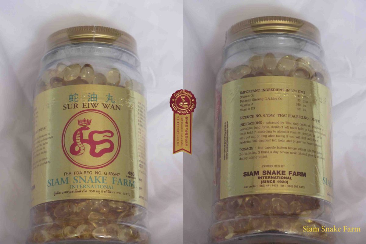 Натуральный препарат на основе жира сиамской кобры Сур Еио Ван (Ya Sur Ying Wan) – натуральное средство, содержащее уникальное сочетание жирных аминокислот и витаминов, производимый на змеиной ферме.