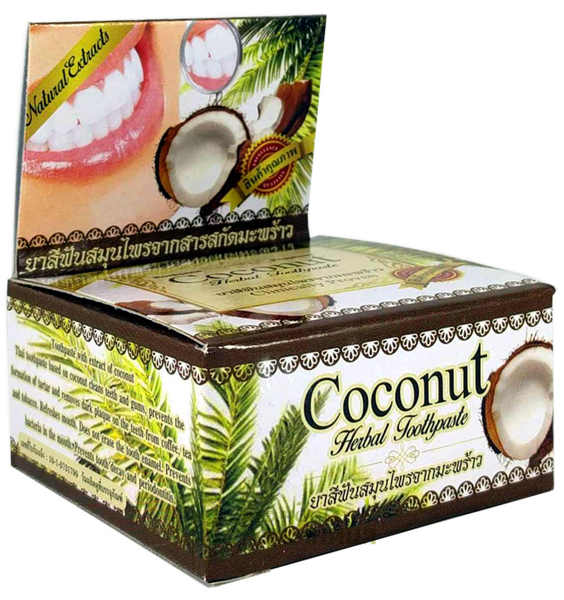 Тайская органическая отбеливающая зубная паста со вкусом кокоса — (coconut herbal toothpaste) — это разница, которую Вы почувствуете сразу после использования! Эта паста не содержит в своем составе химических компонентов — красителей, подсластителей, ароматизаторов поэтому полностью безопасна и полезна.