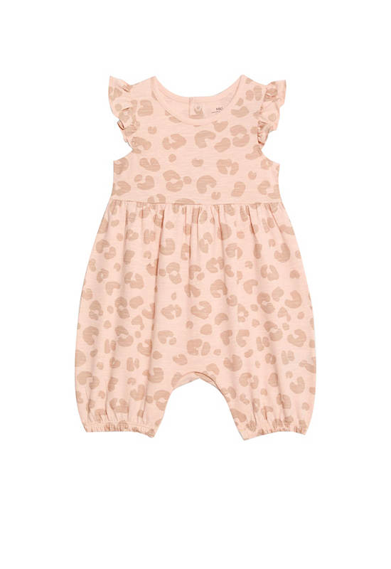 MARKS & SPENCER KIDS Girl Toddler Romper Pure Cotton Jersey Animal Print Peach