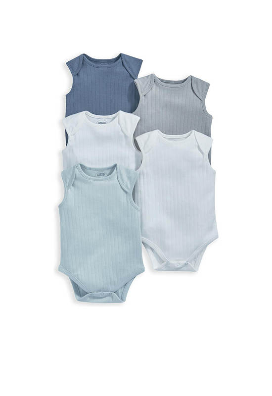 MAMAS & PAPAS Boy Infant Bodysuits Set Sleeveless 5 pcs Blue