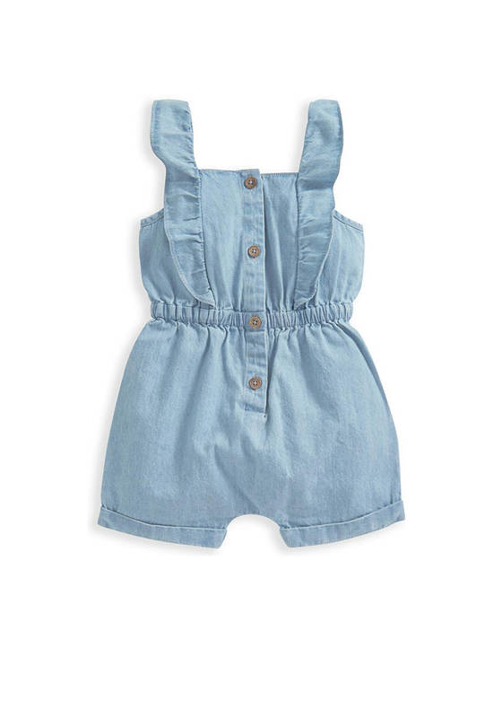 MAMAS & PAPAS Girl Infant Playsuit Chambray Blue Frilled Blue