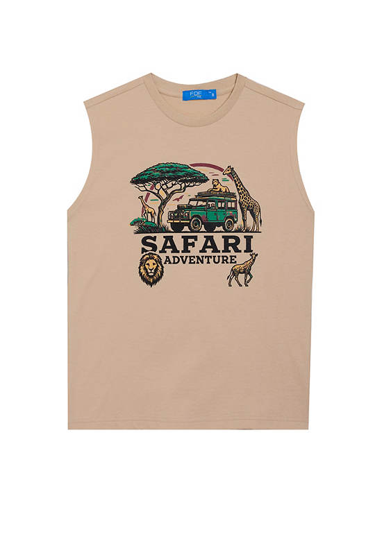 FOF KIDS Boy T-Shirt Sleeveless Graphic Safari Print Khaki