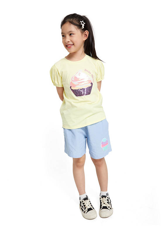 FOF KIDS Girl T-Shirt Cupcake Doll Sleeves Yellow