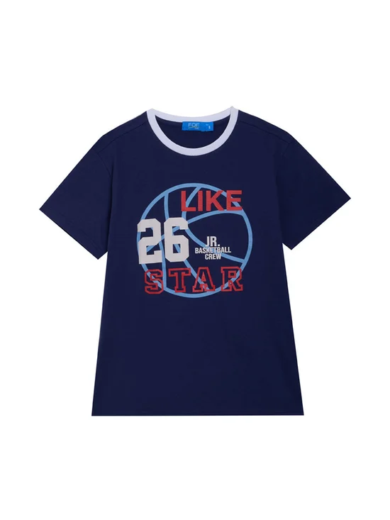 FOF KIDS Boy T-Shirt Short Sleeves Printed Basketball 26 Navy