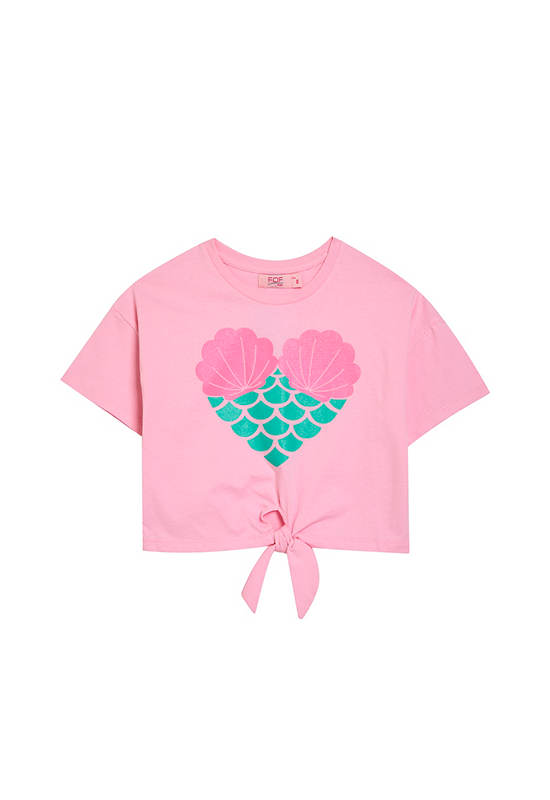 FOF KIDS Girl T-Shirt Short Sleeves Crew Neck Shell Print Pink