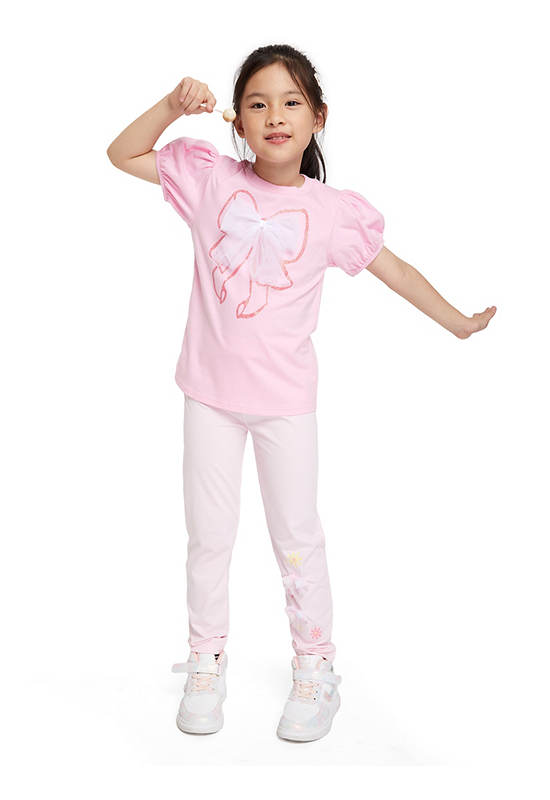 FOF KIDS Girl T-Shirt Bow Doll Sleeves Pink