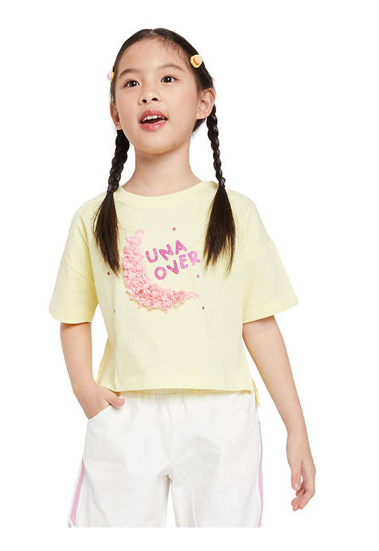 FOF KIDS Girl T-Shirt Short Sleeves Moon Print Yellow