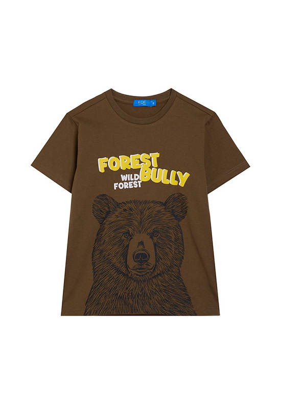 FOF KIDS Boy T-Shirt Short Sleeves Graphic Bear Print Light Brown